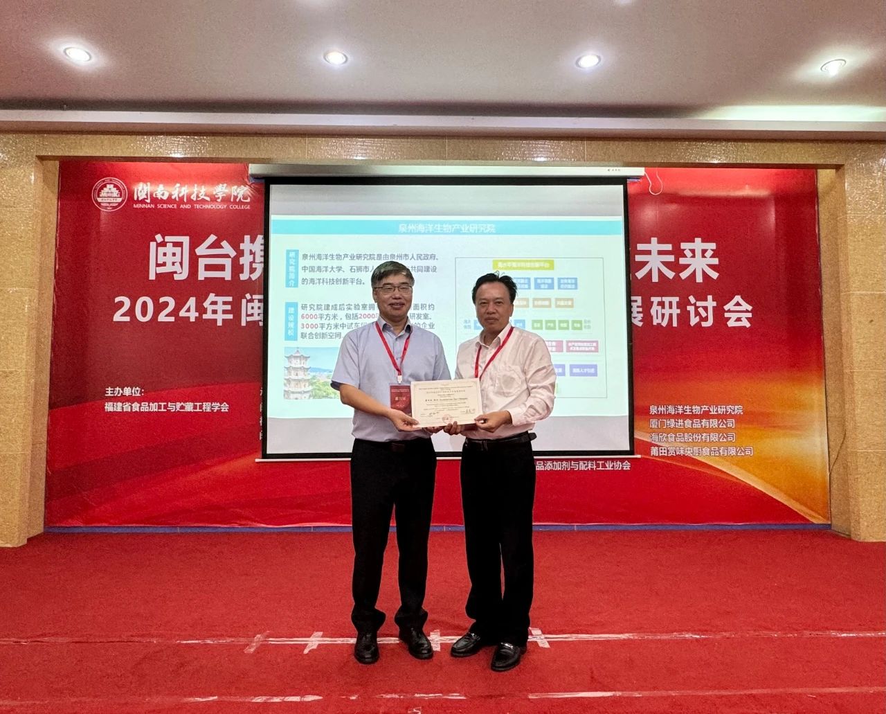 5月25日,2024年闽台水产预制菜产业发展研讨会在闽南科技学院举行。泉州市副市长苏耿聪、南安市副市长林华全参加研讨会。