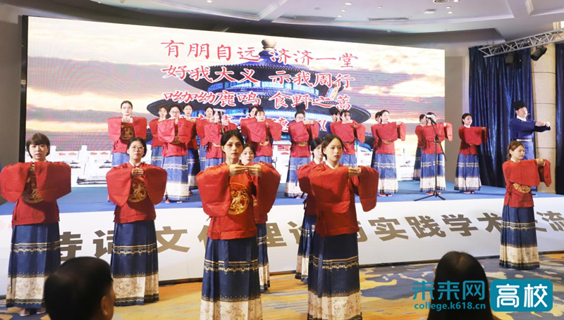 在诗歌吟诵展演上,与会嘉宾与学校师生吟诵展演了《诗经·小雅鹿鸣》《卜算子·我住长江头》《再别康桥》《临江仙·梦后楼台高锁》《江南逢李龟年》等经典诗词歌赋,大家共赏诗词之美,感悟中华优秀文化的博大精深。
