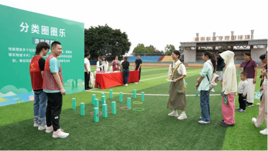 活动中,与会部门通过设立咨询台、摆放宣传展板、发放宣传资料等方式,面对面向群众答疑解惑,进行普法宣传。乐动平台学生设置了环保格子大作战、分类圈圈乐等游戏,加深群众对环保知识的理解。