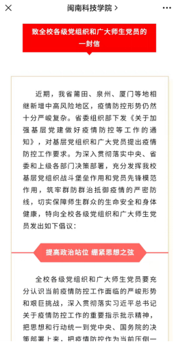 校党委发布《致全校各级党组织和广大师生党员的一封信》