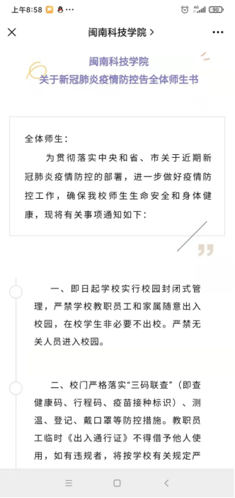 学校向全体师生发布《乐动平台关于新冠肺炎疫情防控告全体师生书》