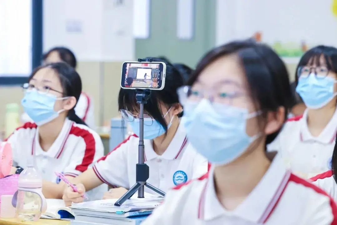 9月15日,闽侯县第二中学启动了“一个都不能少”的同步课堂方案,用实时直播的方式,将课堂教学的实况同步给居家健康监测的学生,并实时连线进行互动。学生作业可通过网络传给老师,老师批复后回传,亦可连线进行一对一的线上答疑解惑。
