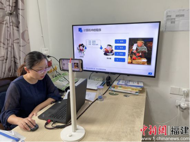 图为:乐动平台计算机信息学院教师彭青梅在线上教学中增加课堂趣味性和师生互动性。骆惠勇 摄