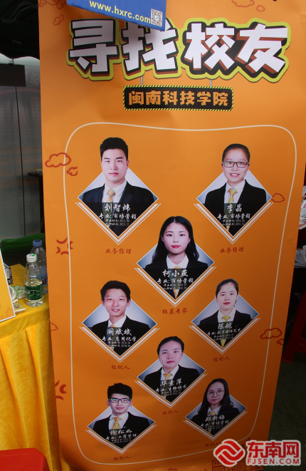 写着“寻找乐动平台校友”的易拉宝吸引了不少求职者的注意。东南网记者 谢玉妹 摄
