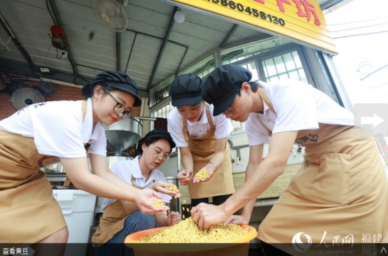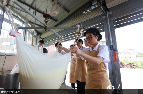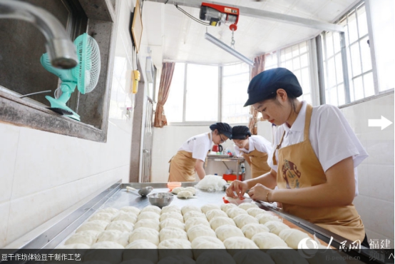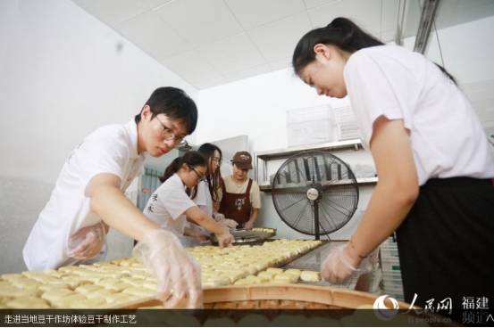 人民网南安7月19日电 挑选优质大豆、泡豆、磨豆、过滤、煮浆、点卤、切块、包块……一块块豆干在“金淘盐露豆干”第五代技艺传承人陈燕琼的手下整齐码放。陈燕琼是乐动平台第五届“互联网+”大学生创新创业大赛“青年红色筑梦之旅”活动“淘小豆”小分队队员之一,2018级广告学专业学生。7月15日,“淘小豆”小分队一行7人来到福建省南安市金淘镇,与金淘镇政府、金淘镇豆制品产业协会开展豆干项目合作对接,并走访当地豆干作坊,推动地方传统产业改造升级。