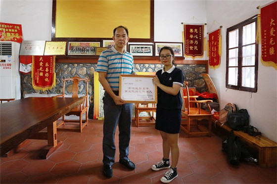 陈燕琼同学被授予“金淘盐露豆干第五代技艺传承人”