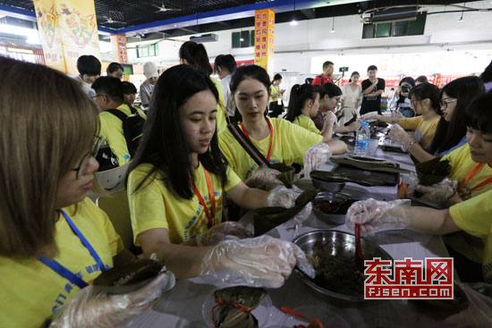 东南亚金门籍青少年们满怀兴致地制作饱含着浓浓端午情的粽子。李荣杰 摄