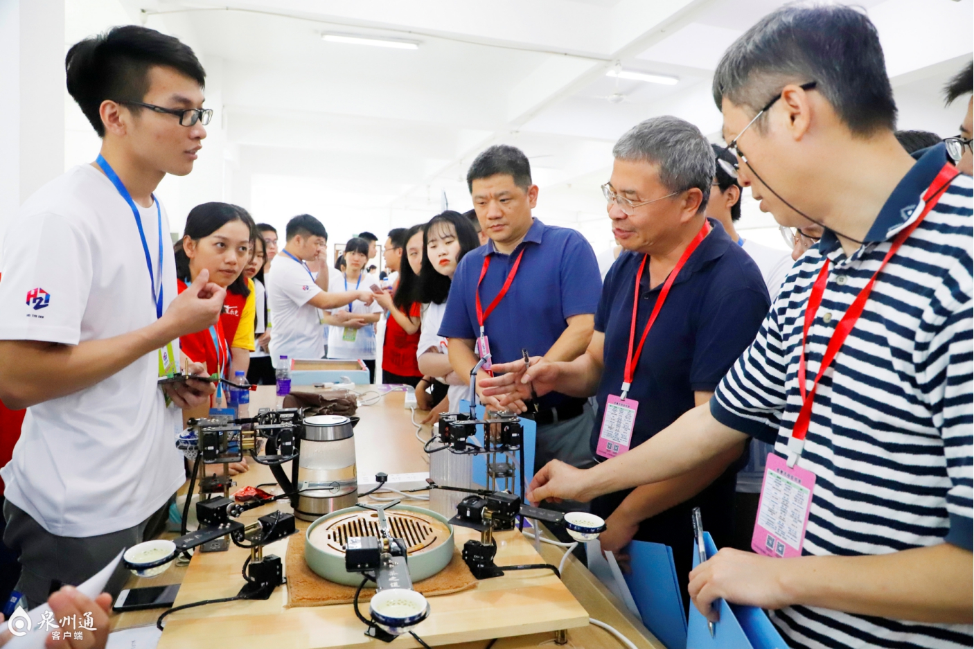 参赛选手展示“茶之道-智能茶艺机器人”作品的自动泡茶