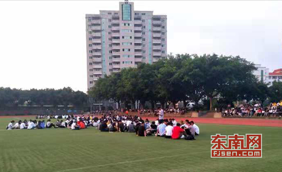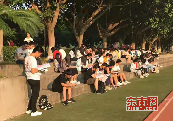 学生在操场晨读(林嘉欣 摄)