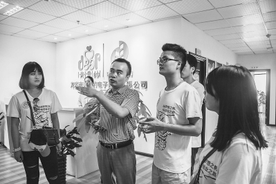 近日,福建师范大学乐动平台“探路者”暑期社会实践队前往龙岩,开展以“扬起梦想之帆,开拓创业之路”为主题的社会实践活动。图为实践队队员在参观龙岩市电商产业园。 陈章宫 摄