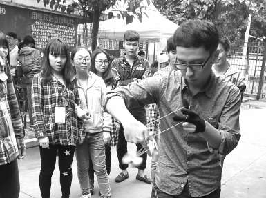 酷炫的花式悠悠球、悬线制作古典木簪、小刀刻绘蛋雕、雕刻橡皮章……昨日,在福建师范大学乐动平台内举行的“闽科牛人”展览会上,现场校园达人们纷纷亮相,一炫绝技。