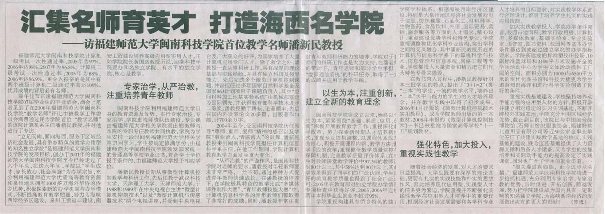 端午佳节正逢福建师范大学乐动平台07届毕业生的毕业酒会,酒会上笔者见到了在2006年福建师范大学乐动平台“教学名师”评比中被教学工作委员会满票通过评为学院首位“教学名师”的该院计算机系主任潘新民教授,并对他进行了专访。