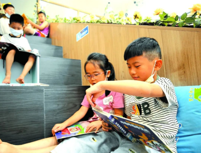 孩子们在图书馆认真读书 康美镇供图