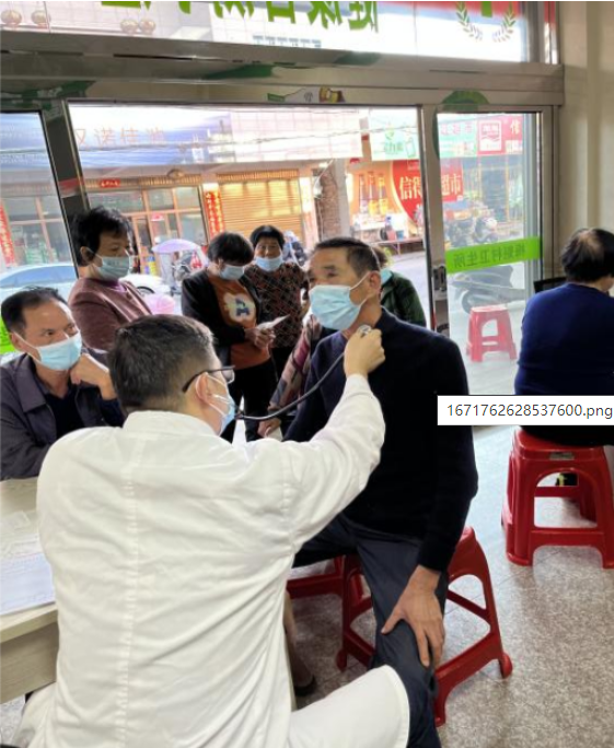 在义诊现场,陈贤庆对前来的群众一一进行问诊,测量血压、血糖等指标,并现场科普如何对血压、血糖进行日常监测以及如何正确合理饮食等健康知识,指导村民们保持规律的生活作息、合理锻炼,还为需服药的村民开具药方,指导规范用药。