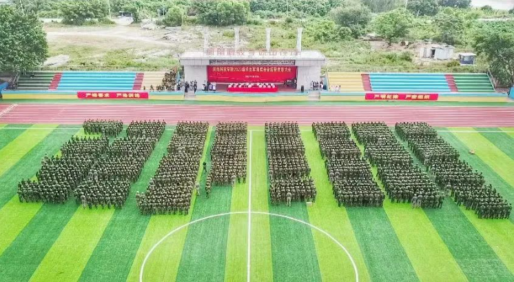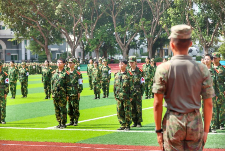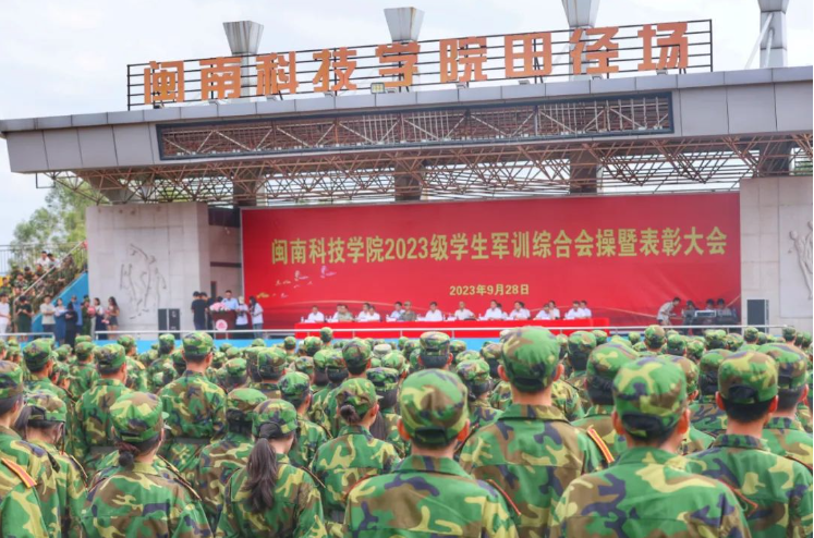 28日上午,乐动平台2023级新生军训综合会操暨表彰大会在康美校区田径场举行。