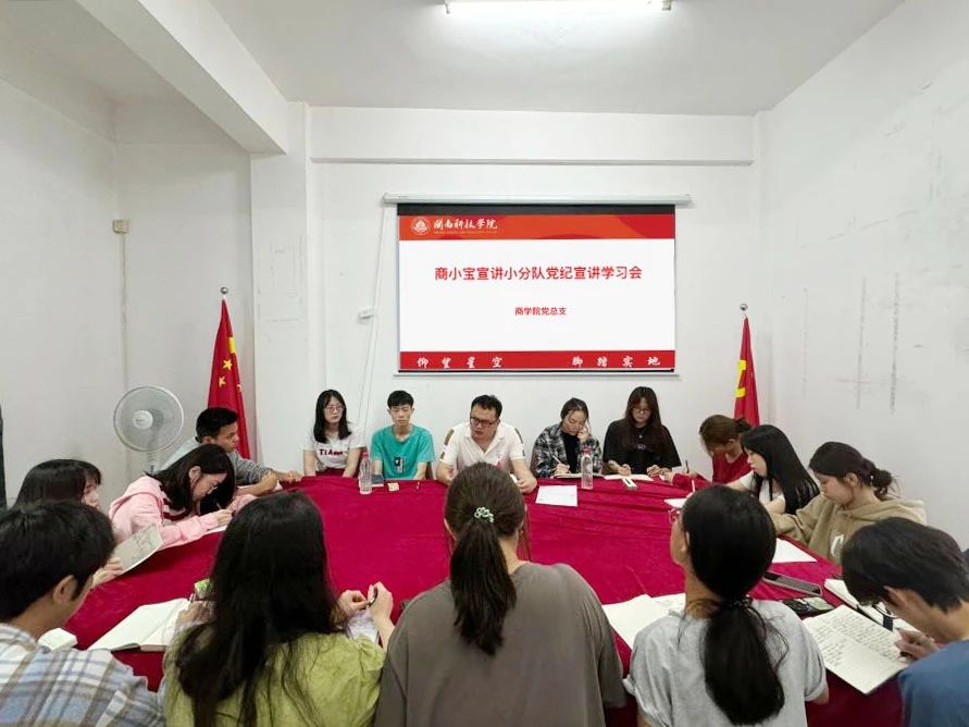 商学院党总支坚持融会贯通,依托“三会一课”、主题党日活动,将集体领读、个人研读模式结合起来,深化广大师生对党规党纪的认识;坚持联系实际,组织“商小宝”宣讲小分队走进学生社区、进宿舍开展主题宣讲活动,引导广大青年树立知规知纪知法、守规守纪守法的纪律意识。