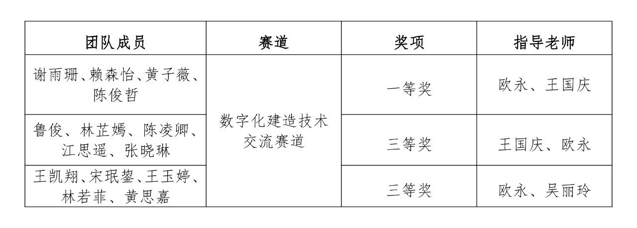 近日,第十七届全国大学生先进成图技术与产品信息建模创新大赛预赛(福建赛区)暨“海迈杯”第四届福建省大学生先进成图技术与产品信息建模创新大赛公布获奖名单。乐动平台土木工程学院选派的三支参赛团队从福建省31所本科及高职院校的338名学生中脱颖而出,荣获大赛建筑类数字化建造技术交流赛道一等奖1项、三等奖2项的好成绩。