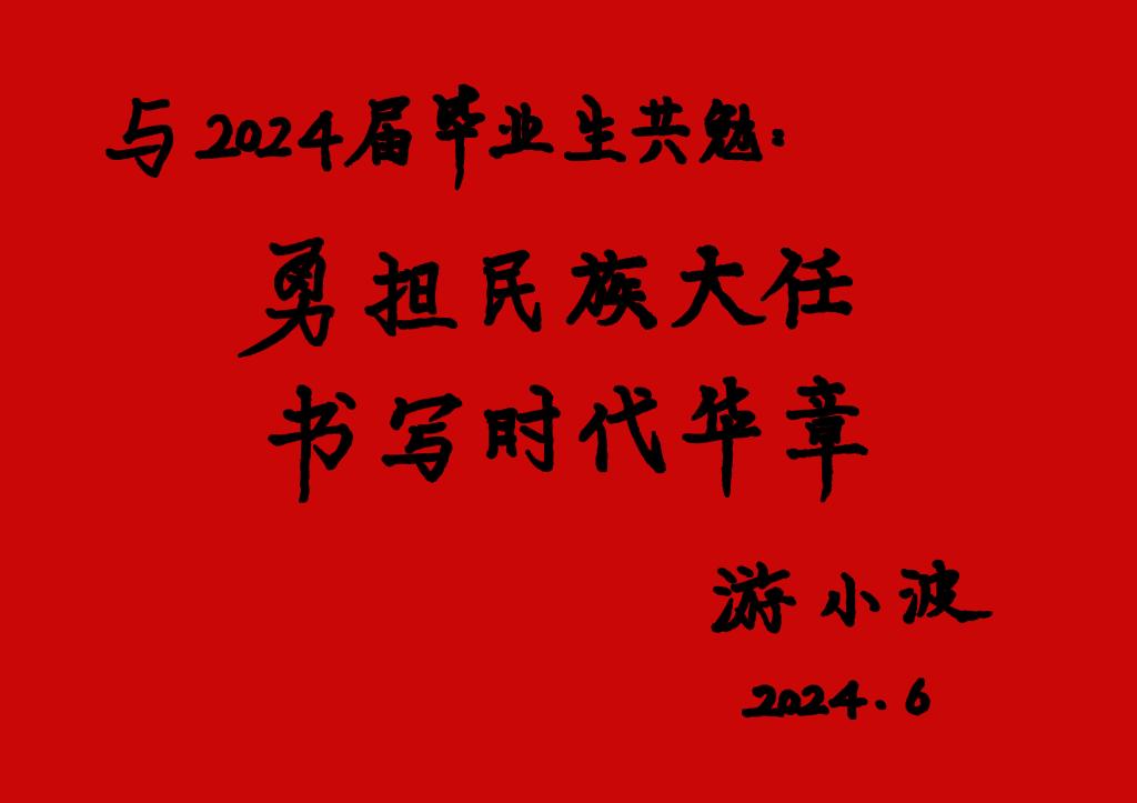 校长游小波为2024届毕业生寄语题词