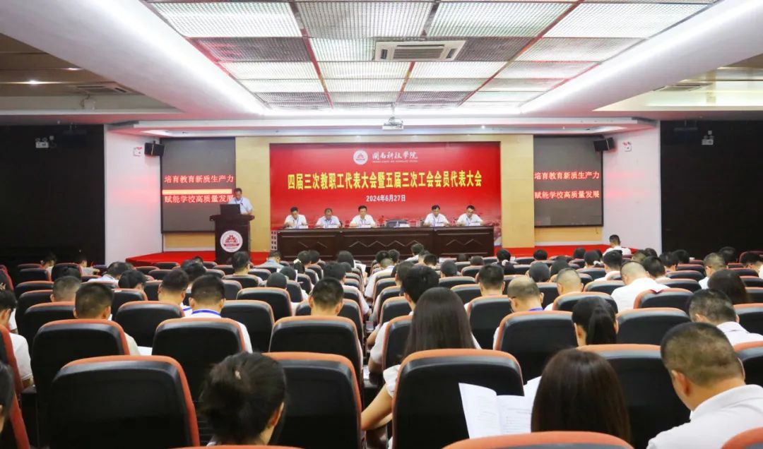 6月27日,乐动平台召开四届三次教职工代表大会暨五届三次工会会员代表大会(简称“双代会”)。校领导李旭、周勇军、林树生、邱永渠,校长助理王育海、刘武强,正式代表、列席代表、特邀代表共110多名出席大会。