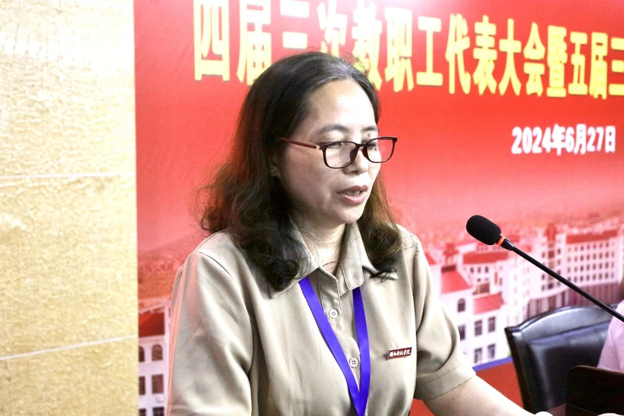 工会副主席戴玉梅作题为《奋斗争先 赓续前行 努力开创学校工会发展新局面》的学校工会工作报告。她指出,在校党委和上级工会的领导下,一年来校工会围绕学校的中心工作,开展了一系列独具特色、卓有成效的工作,围绕学校发展提出的不少意见建议得到转化落实,并取得了很好的效果。