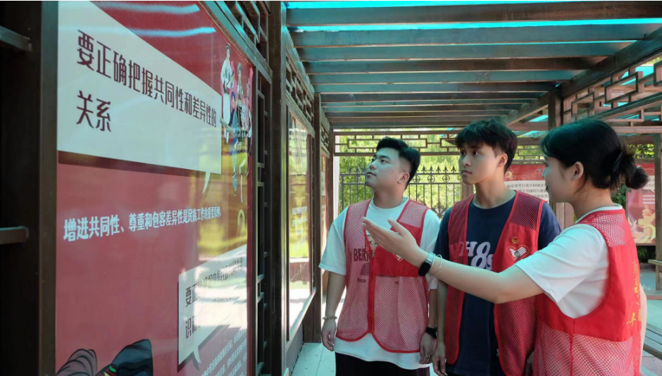 实践队走进银川市铸牢中华民族共同体意识主题教育馆参观调研,深入了解各民族交往交流交融的典型事例,沉浸式学习感悟党在国家发展的各个阶段对铸牢中华民族共同体意识的重要举措和主要成果。通过参观调研,实践队成员更加深刻地理解了铸牢中华民族共同体意识的核心内涵和重大意义。“接下来,我们还要把铸牢中华民族共同体意识融入支教实践,用心用情用力做好支教工作,教育引导青少年铸牢中华民族共同体意识,弘扬、践行民族团结精神。”实践队队长、2023级汉语言文学(专升本)专业陈江艺说。