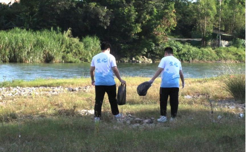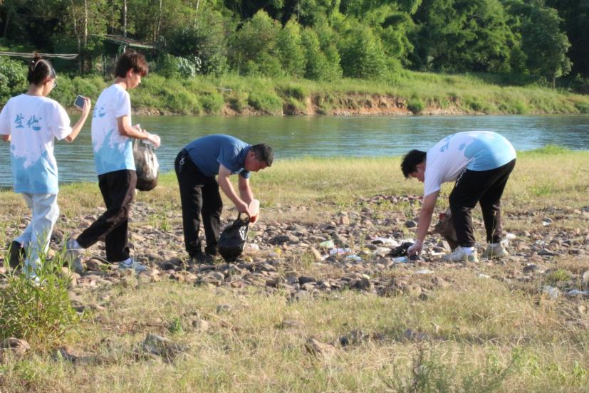 实践队一行来到东溪开展河道净滩美化活动,大家分工合作捡拾河滩垃圾,用实际行动呵护河道整洁。