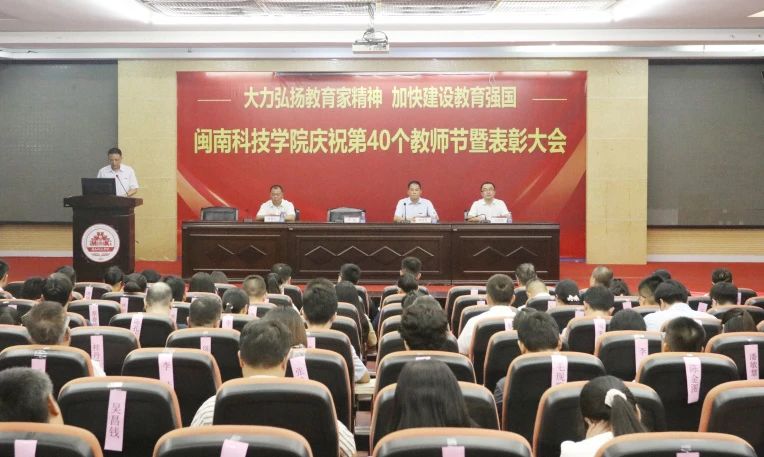 9月11日下午,乐动平台隆重举行庆祝第40个教师节暨表彰大会。大会深入学习贯彻党的二十届三中全会精神和全国教育大会精神,表彰过去一学年在教育教学、科研服务、指导学生竞赛等工作中取得优异成绩、作出突出贡献的教师,举行“青蓝结对”导师聘任仪式。校领导李旭、周勇军、林树生,校长助理刘武强出席表彰大会。