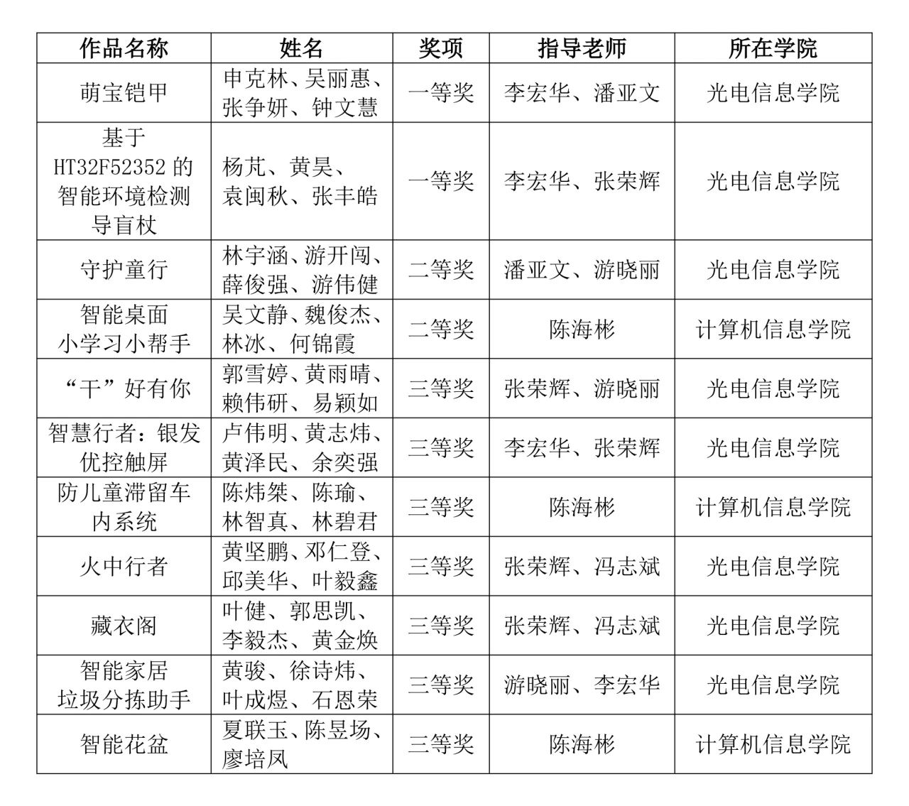 第十六届福建省“合泰杯”大学生单片机应用设计竞赛乐动平台获奖名单