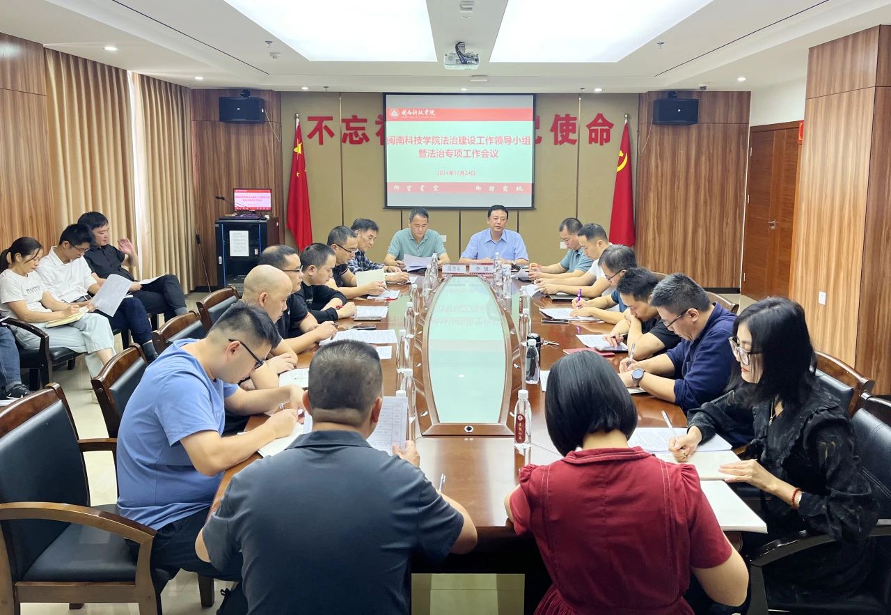10月24日,校党委书记李旭主持召开法治建设工作领导小组暨法治专项工作会议,学习有关文件精神,听取法治建设有关情况汇报,研究部署法治建设工作。学校法治建设工作领导小组成员、二级学院党总支书记参加会议。