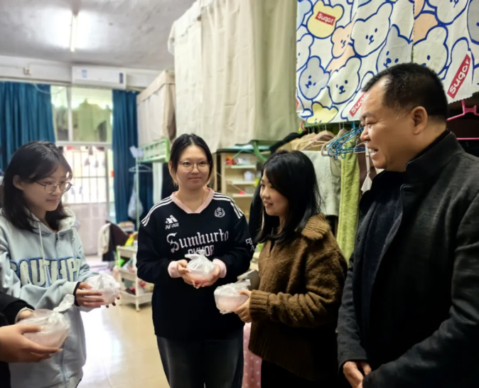 走进学生宿舍,为同学们送上暖心的节日祝福和问候