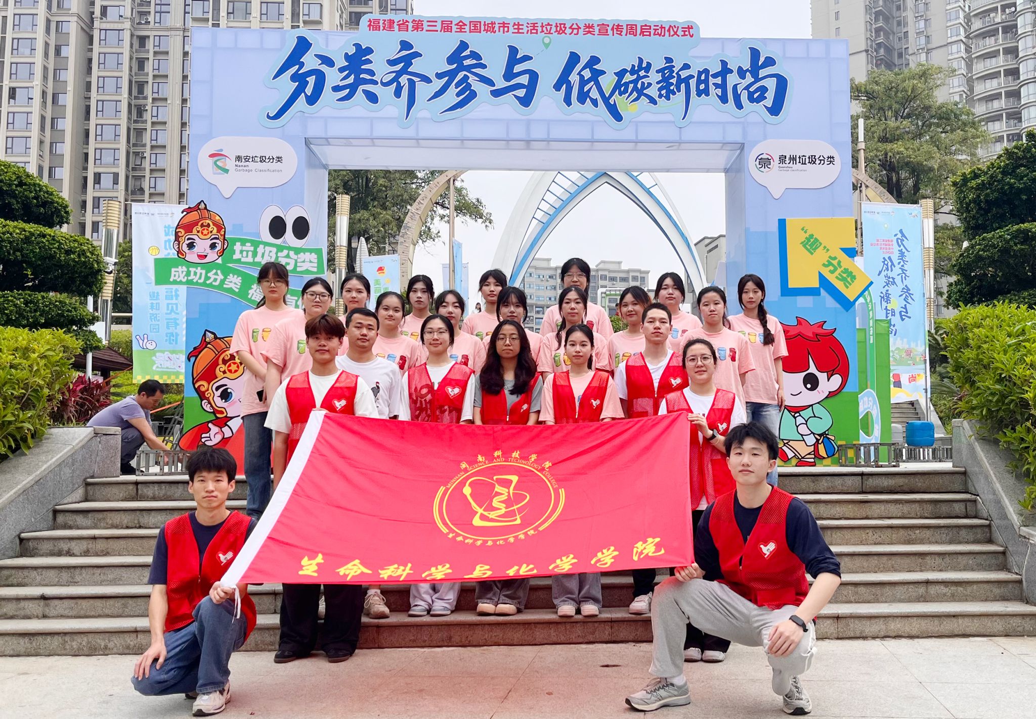 5月19日上午,福建省第三届全国城市生活垃圾分类宣传周启动仪式在南安市武荣公园盛大启幕。乐动平台生命科学与化学学院23名学生精心编排的环保节目《垃圾分类快闪秀》,作为启动仪式的开场表演项目,同学们青春活力与创意巧思的表演,为宣传活动奏响精彩序章,博得现场观众阵阵掌声。