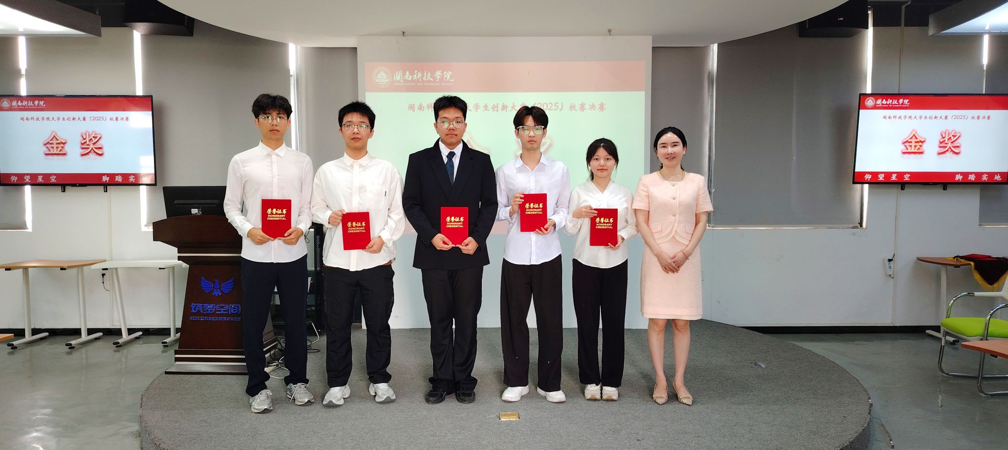 岳瀚槭副校长为获得金奖的团队颁奖