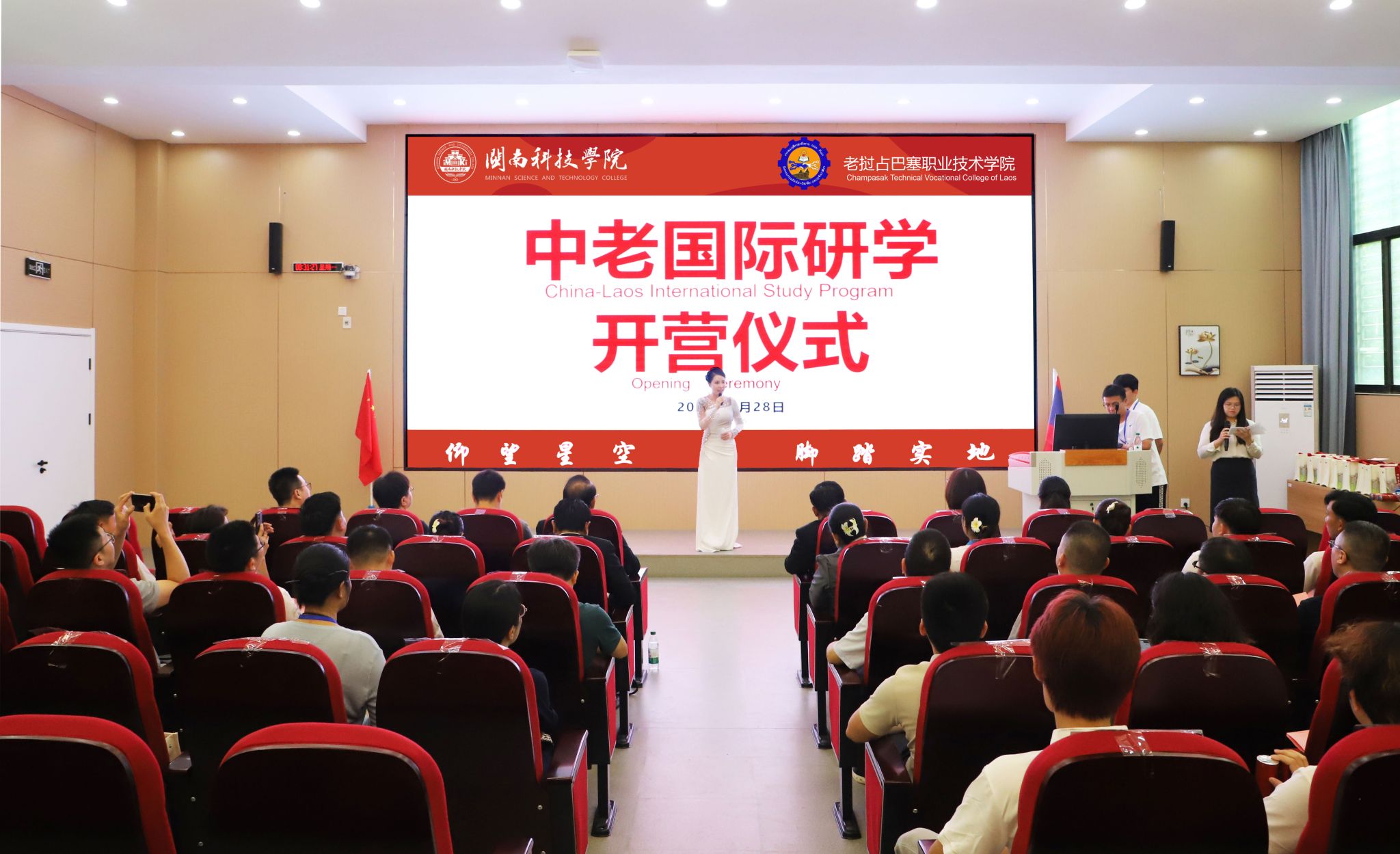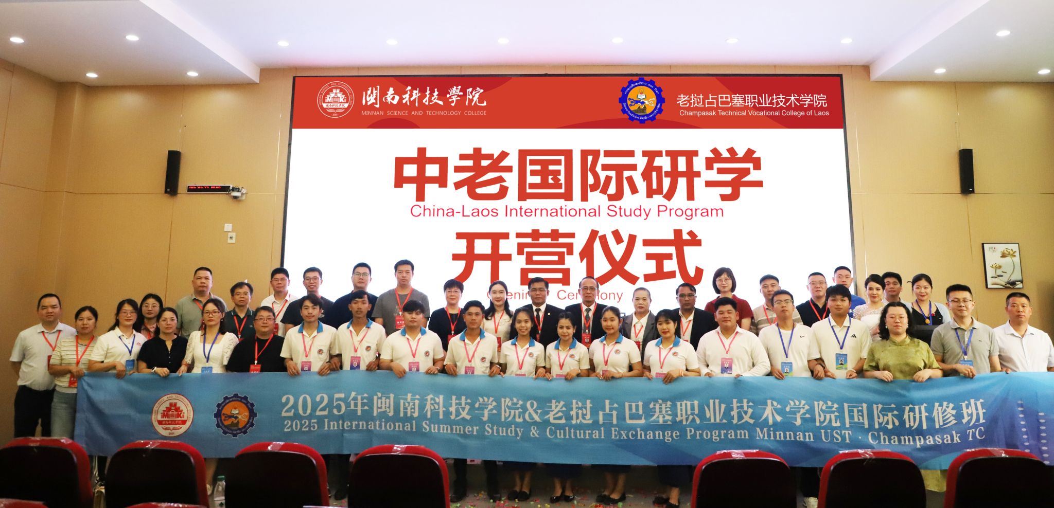 7月28日,乐动平台与老挝占巴塞职业技术学院国际研学营开营仪式在乐动平台盛大启幕。老挝占巴塞职业技术学院院长坎鹏·拉萨翁沙、老挝占巴塞职业技术学院原院长兼校务顾问莫凯·苏帕翁,南安市人民政府办公室四级主任科员、外事科科长苏君娜,南安市公安局出入境管理大队副大队长许金山、南安市第三小学负责人吕敦盛、南安市创石科创服务有限公司项目经理林琛贵、中老职业教育发展共同体副秘书长张艺、乐动平台副校长岳瀚槭出席开营仪式,与来自老挝占巴塞职业技术学院13名师生共同开启“知华・习技・融文”文化之旅。