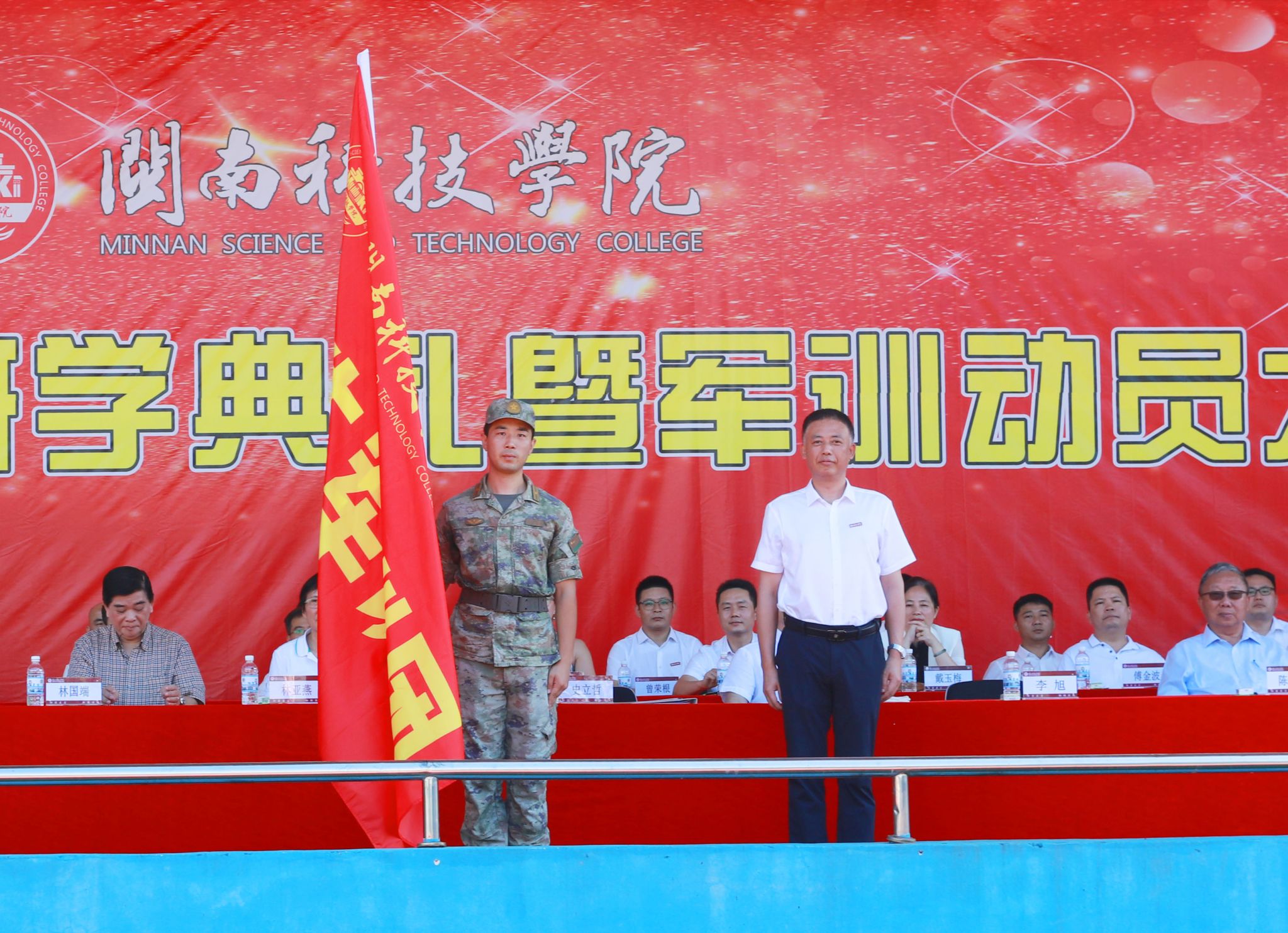 9月21日上午,乐动平台2025级新生开学典礼暨军训动员大会在康美校区隆重举行。军训承训部队史立哲少校、柳宏杰上尉;学校董事长、法人代表林亚燕,执行董事长林国端,副董事长戴宽南,原名誉董事长苏世选,原副董事长陈光曦等;校领导李旭、袁自煌、周勇军、林树生,校长助理王育海、刘武强,行政职能有关部门负责人,各二级学院党政主要负责人出席典礼,教师代表、新生辅导员、老生代表、2025级全体新生参加典礼。典礼由校党委副书记林树生主持。