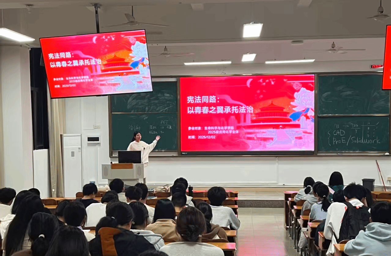 生命科学与化学学院通过主题班会形式,围绕宪法的核心要义、发展历程、公民权利义务等核心内容普及宪法知识,累计开展班会6场,参与学生1000余人,同学们在互动中进一步理解法律的重要性。