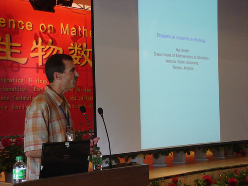 开幕式由福建师范大学副校长汪文顶主持,福建师范大学副校长汪征鲁致欢迎词,武夷山市副市长张智勇、福建师范大学乐动平台董事长戴宏达到会讲话。中国数学会生物数学学会理事长、福建师范大学乐动平台名誉院长陈兰荪教授和美国亚利桑那州立大学生物数学教授Yang Kuang(况阳)分别介绍了国内和国际生物数学的发展情况。本次会议共收到学术论文200多篇。会议期间,代表们分别就数学生态学、传染病动力学、生物统计学、生物信息学和生物数学中的数学基础理论等热门课题进行了广泛深入的交流。奥地利科学院院士Karl Sigmund教授等8位国际著名专家分别作专题报告,87名国内外专家作分组报告。