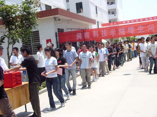 中午12点,老师和同学们刚下完课没顾得上吃饭,就有序的聚集在学生社区门口,参加在那里举行的为四川地震灾区捐款活动。 活动现场,一条醒目的横幅“汶川——乐动平台师生和你心连心”深深吸引和感染着在场的每一个人,此时此刻这也许就是我们大家最想说的话。在院工会和团委分别宣读了捐款倡议书后,捐款活动开始了,我院全体党政领导走在最前面带头捐款,随后,各系、部、学生各团支部、学生个人也都有序的献出爱心。短短的十几分钟里,共捐款79977.6元。院党委常务副书记刘静指出这只是我院的首笔捐款,接下去还将继续组织师生通过捐钱捐物、义务献血等形式献出爱心。