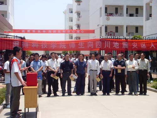 地震无情,我们有爱,灾难面前,让我们携手共度。当5月12日四川省汶川县发生7.8级地震灾害的消息传来,我院师生们就一直牵挂着灾区人民的生命安全。5月16日,在院党委的统一部署下,院工会和团委联合组织了一次捐款活动,全院师生们携手同心,尽己所能。