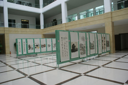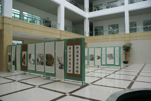 为贯彻落实党的十七大精神,坚持社会主义先进文化方向,兴起社会主义文化建设的新高潮,同时为庆祝2008年元旦,进一步丰富校园文化生活,开拓学生视野。我院于12月23日至12月25日在图书馆一楼大厅举办“乐动平台迎新年名家书画作品展”。此次展览展出省内外书画名家42幅作品均来自学院医务所所长张勇先生的个人收藏品。这次作品展可谓阵容庞大,内容丰富,题材广泛。有山水、人物、花鸟;有工笔、写意、重彩;绘画风格上有地道的传统描绘,更有现代观念的激情表现。