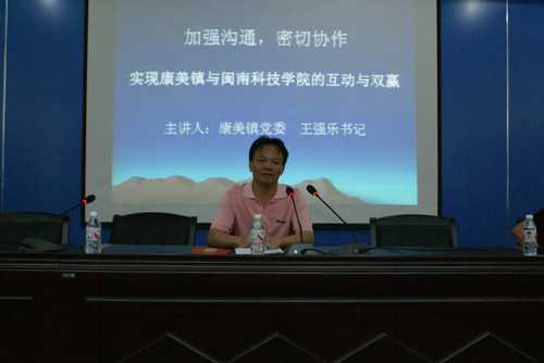 王强乐首先结合了康美镇自身实际,重点谈论地理位置独特、自然条件优越、文化积淀深厚、港澳台侨优势突出四个特点,以及今后康美镇的整个发展蓝图,最后重点就如何实现康美镇与学院双方的互动和共赢做了精彩论述。王强乐指出学院将校址放在南安市康美镇这片蓬勃生机的热土上是一个明智的选择,因为康美镇所具有区域优势、侨乡优势以及良好的发展机遇和前景同样也为学院的发展提供了巨大的资源和能量。王强乐最后指出,康美镇与乐动平台的互动与双赢是一条正确的道路,是今后双方很长一段时期的奋斗目标,希望双方能够朝着这样一个目标共同发展,为康美镇的建设、为乐动平台的发展共同努力。