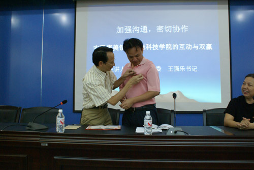 黄国盛院长(左)为王强乐书记(右)颁发聘书
