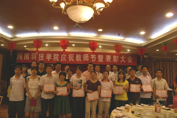 过去的一年是收获的一年,所取得的成绩为大家所瞩目。2009年,由我院潘新民教授负责的《微型计算机控制技术》被评为福建省2009年度省级精品课程,实现了我院省级精品课程零的突破;由我院杨民和教授担任专业负责人的生物工程专业入选2009年度高校省级第四批本科教育特色专业建设;计算机一级一次性通过率达99.8%,创历史新高;2008年荣获2007年福建省普通高校毕业生就业工作优秀单位后,今年再次荣获2008年福建省普通高校毕业生就业工作优秀单位;荣获2008年度福建省“平安校园”称号。这些成绩的取得与师大党委领导、董事会的关心和支持是分不开的,与全体教师的辛苦努力是分不开的。成绩主要归功于大家,荣誉更是对大家辛勤汗水的回报,是对大家付出的努力的充分肯定。但是,我们不要满足于过去,在今后的学习、工作、生活中继续保持不断创新,努力进取,顽强拼搏的良好作风,继续提倡和发扬与时俱进,开拓创新,奋发有为的创业精神。希望大家今后在各自的工作岗位上为闽南科技院的发展做出新的贡献!