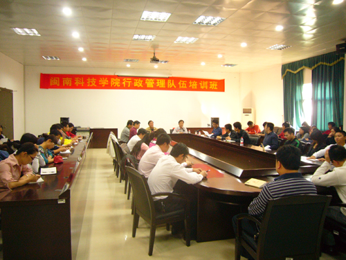 2010年10月27日下午,我院在图书馆评建办公室举行行政管理人员培训班开班仪式。学院院长郭丹教授、党委常务副书记林国庆、副院长肖华山教授、党委陈振祯副书记、副院长周勇军、全院各行政管理职能部门、辅导员、图书馆、实验中心及各系系秘书的80多名行政管理人员参加了学院举办的管理队伍培训班。开班仪式由副院长周勇军同志主持。