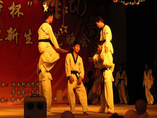 晚会异彩纷呈,节目内容丰富多样。随着开场节目缓缓地推进,学生乐队表演《爱之初体验》,将现场气氛逐渐加温。紧接着学院刘颖琳老师带来的《美丽的心情》,时而快,时而缓的音乐节奏,给到场的观众带去了美的体验。随后,由江丹丹老师领衔的富有中国传统韵味的舞蹈《剪纸姑娘》、林雅玲老师的《大地飞歌》陆续登场,同大家一起分享着舞蹈的喜悦以及歌声中美好的憧憬;尚武社带来的跆拳道表演技惊全场,掀起了全场的高潮;2009级服装设计与艺术专业2班的同学携手院艺术团模特队,为大家展示了精彩的服装秀,博得了场下观众的阵阵掌声与喝彩。晚会尾声,在有氧操的基础上,融入了拉丁的奔放与有氧拉丁舞的激情,为本场晚会画下了圆满的句号。