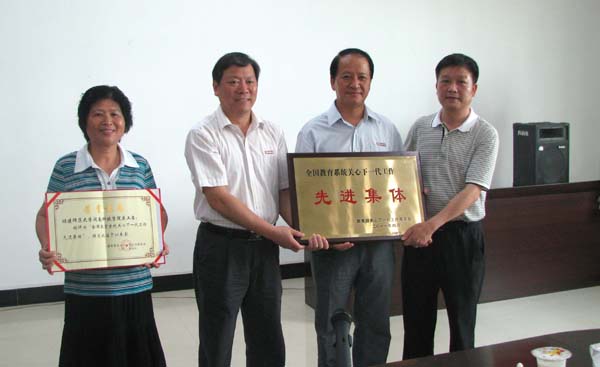 会上,罗萤书记代表校党委发表了热情洋溢的致辞。他高度赞扬了校关工委在校党委的领导下,在上级关工委的指导下取得的优异成绩,他指出,校关工委不断在探索中前进,在实践中完善,在创新中发展,使关心下一代工作领域不断拓宽,工作内容更加丰富,全方位、多层次、多渠道的工作格局更加完善。罗书记和校关工陈锋主任为乐动平台颁发了全国教育系统关工委先进集体奖牌,为社会历史学院关工委主任张清颁发全国教育系统关心下一代工作先进工作者证书和勋章。