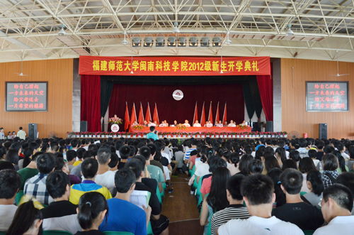 9月9日上午,我院2012级新生开学典礼在学生活动中心隆重举行。福建师范大学副校长、博士生导师许明教授,南安市副市长李清安先生,南安市委教育工委副书记田空军先生,学院董事长戴宏达先生、副董事长戴宽南先生,福建师范大学教务处副处长黄俊兴同志、学工部副部长陈晓斌同志,康美镇人民政府镇长陈武琳同志,学院党政领导及各职能部门(中心)负责人、2012级辅导员和新生参加了开学典礼。开学典礼由院党委副书记李彬源主持。