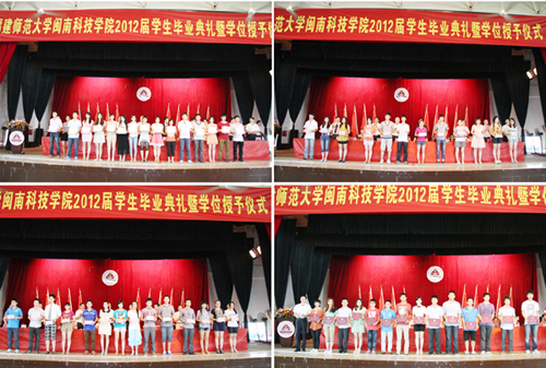 肖华山副院长为学院2012届毕业生颁发毕业证书,郭丹院长为2012届毕业生颁发福建师范大学乐动平台学士学位证书并授学士礼。