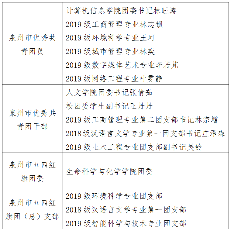 近日,泉州市2021年度“两红两优”评选结果揭晓,乐动平台6名团员、5名团干、1个团委和3个团(总)支部受表彰。