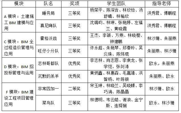 近日,“第八届全国高校BIM毕业设计创新”大赛中,乐动平台土木工程学院2018级工程造价专业选派的8支队伍,分别荣获二等奖一项,三等奖五项,优秀奖2项。