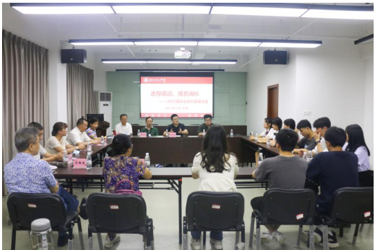参会人员围绕理想信念、专业竞赛、志愿服务、社会实践、创新创业等方面座谈交流。毕业生代表们感谢学校与老师为学生成长成才提供了良好的学习环境和优质的发展平台,并表示将带着母校殷切嘱托继续践行“仰望星空,脚踏实地”的校训,把握时代机遇、践行青年担当,在未来新的征程中书写不负时代、不负韶华、不负人民的青春华章。